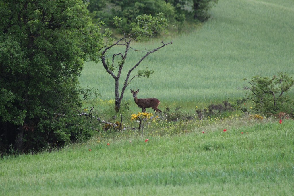 After the dam the gravel path turns into a rocky muddy trail only suitable for tractors and hard core mountain bikes. We plow through until Langara Ganboa in a bad mood, where we have our prepped sandwiches and then decide to take a shortcut on the tarmac road directly to the bridge, after the advice of a cigar smoking local, who assures us that the path after the bridge is again gravel. While cycling to the bridge, Arne spots a deer in the distance. Far enough that it’s not bothered by us, but close enough to observe.
