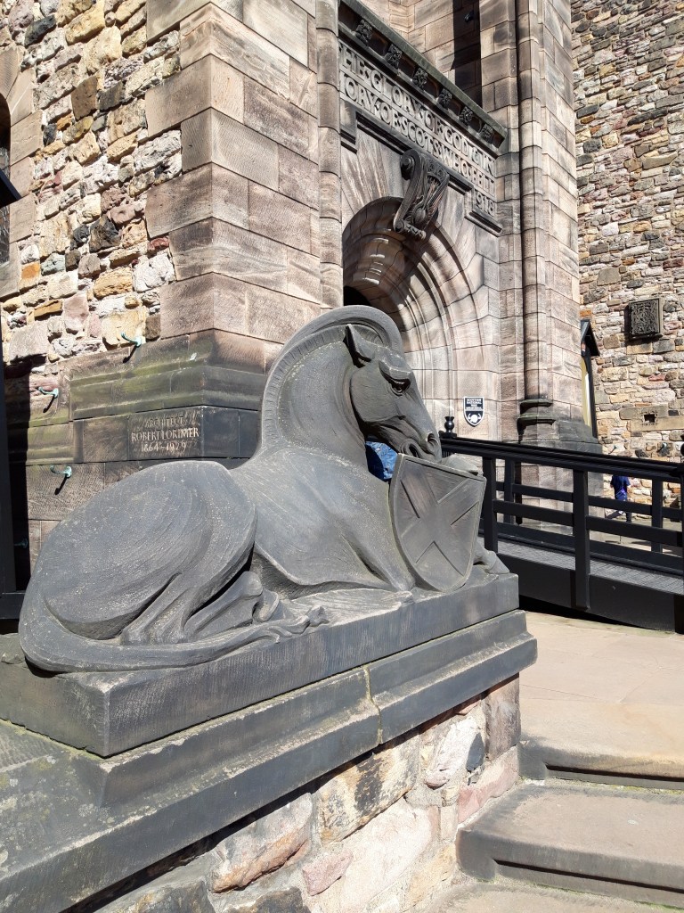 After the tour we first visit the crown jewels (a crown, scepter and a sword) first. There’s already a bit of a wait but they’ve turned the waiting line into an educational trail so it’s not boring. The jewels themselves are historically important, but I must admit I can’t get very excited at the sight of them, the history of politics doesn’t interest me as much as the history of logistics, engineering or science. We visit some of the other buildings in the castle complex, the hammerbeam ceiling in the great hall is really impressive – no nuts and bolts, only wooden pegs hold this thing up. However I’m most touched by the War Memorial. It’s the newest building, with a beautiful Art Nouveau facade and it contains books with all the names of soldiers attached to a Scottish regiment who died in the Great War or later, the last entry added in 2013. I’ve seen a lot of similar memorials in France and Belgium and they always make me sad.