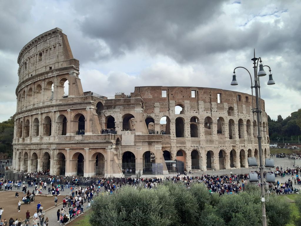 For the first time this holiday we’ve actually put a wake up alarm and since we managed to stay up until nine pm yesterday, we’re ready to roll around seven am. The usual breakfast and a shuttle pick-up at eight thirty to get to the Colosseum, where we meet Lucy, an architect turned guide, who will show us the Colosseum, Palatine Hill and Roman Forum this morning. While waiting for everybody to get together, we discuss the modern architecture buildings Rome has to offer and get some good advice on how to get there. The tour includes skipping the line and we’re grateful for it, as even at this early hour there is a line to get in and not everybody is guaranteed to get a ticket. Due to ongoing renovations they can only have 3000 people inside at any give time, that sounds like a lot but since they’re spread out over quite a large area the crowd pressure is not too bad. The guide is passionate and has a lot of interesting stories, but we also get a chance to walk around the second level by ourselves, enjoying the view over the arena and underground passages. It’s really strange to think that this was the place to be for violence and blood sports for so long, it really brings home the fact that the Roman culture had different values and ethics.