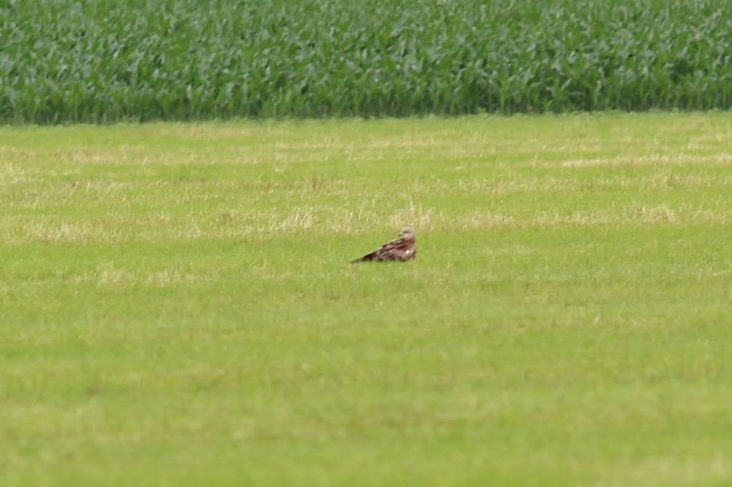 We’re using the GPS for navigation, since it will guide us by several big houses or castles that are just off the route. We’re on our way to Mersch when we spot a big bird of prey chasing off a jackdaw just overhead. It’s not the usual buzzard so when it lands in a field nearby we stop for a closer look through the zoom lens. Pretty far away still and it’s difficult to recognize, so I open the BirdSounds Europe app to see if we can identify it by its call. Pretty quickly we find out it’s a red kite, rare in Belgium but there’s a apparently a large population in Germany. It even calls back to us when I play the call from the app.