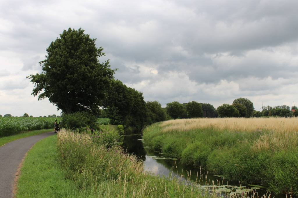 A bit further on we have a look from the gate at Haus Venne and continue our way west and north. Schloss Drehsteinfurt is well hidden in the trees, but is surrounded by a beautiful park, we take a moment for a break while I (quickly) switch tshirts from ultra light bike shirt to merino wool tshirt and put on a light sweater for the first time this holiday.