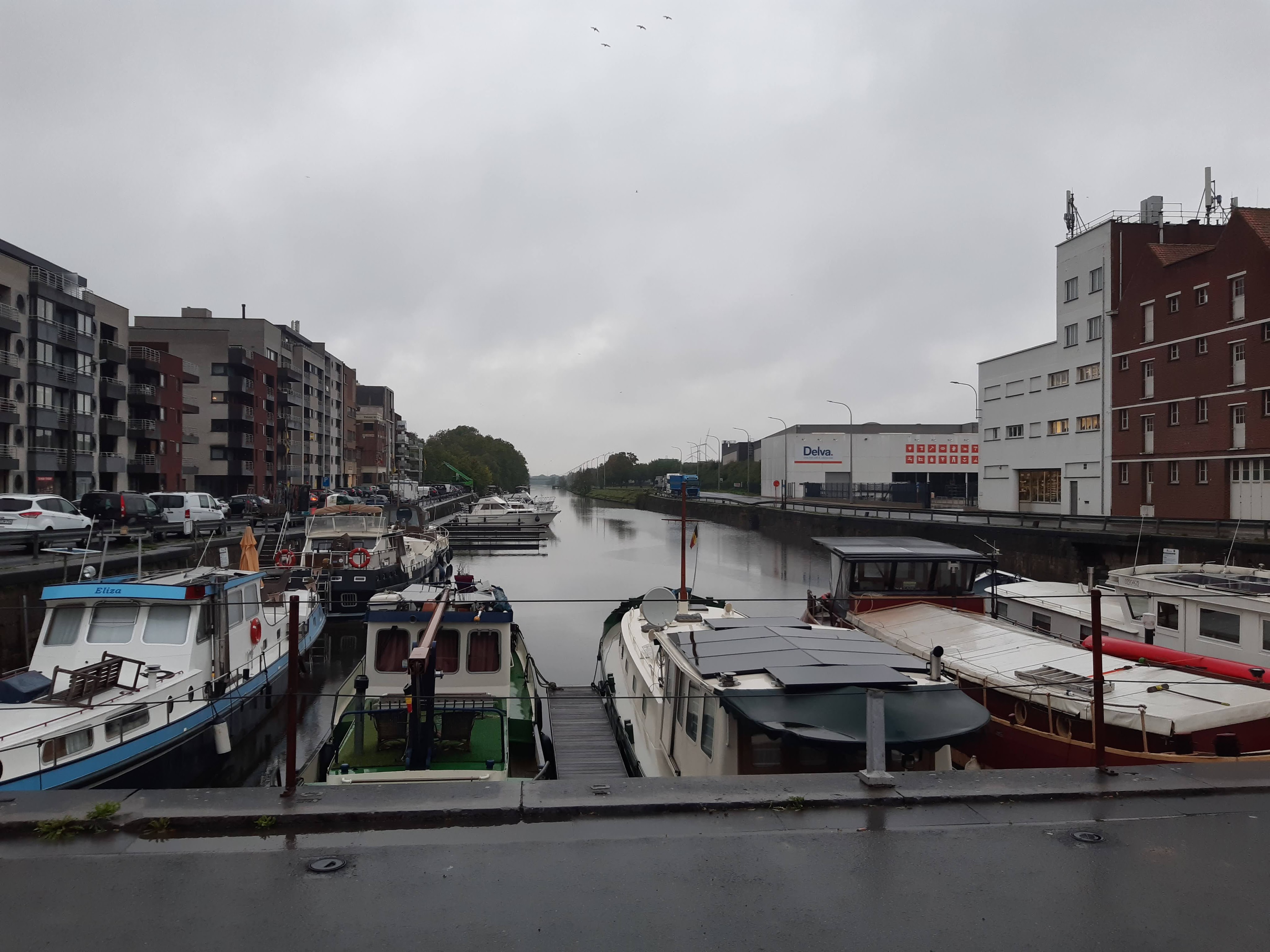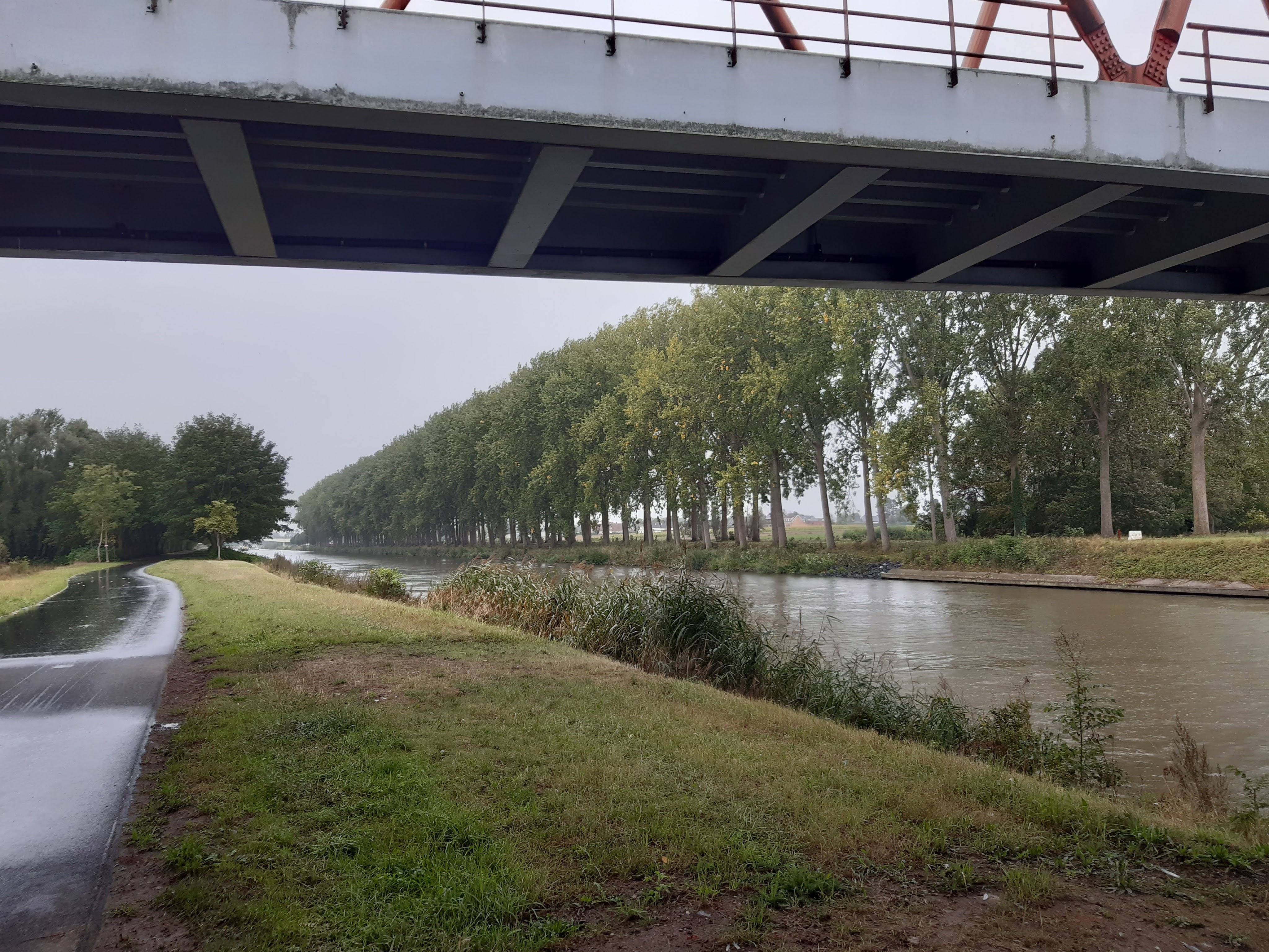Unusually but fortunately for us, the wind was mostly from the north or north-east, so we had a bit of free push a lot of the time. The meandering Schelde meant we changed heading every kilometer so that was a bit harder, but the straight canals give you maximum profit of a tailwind.
