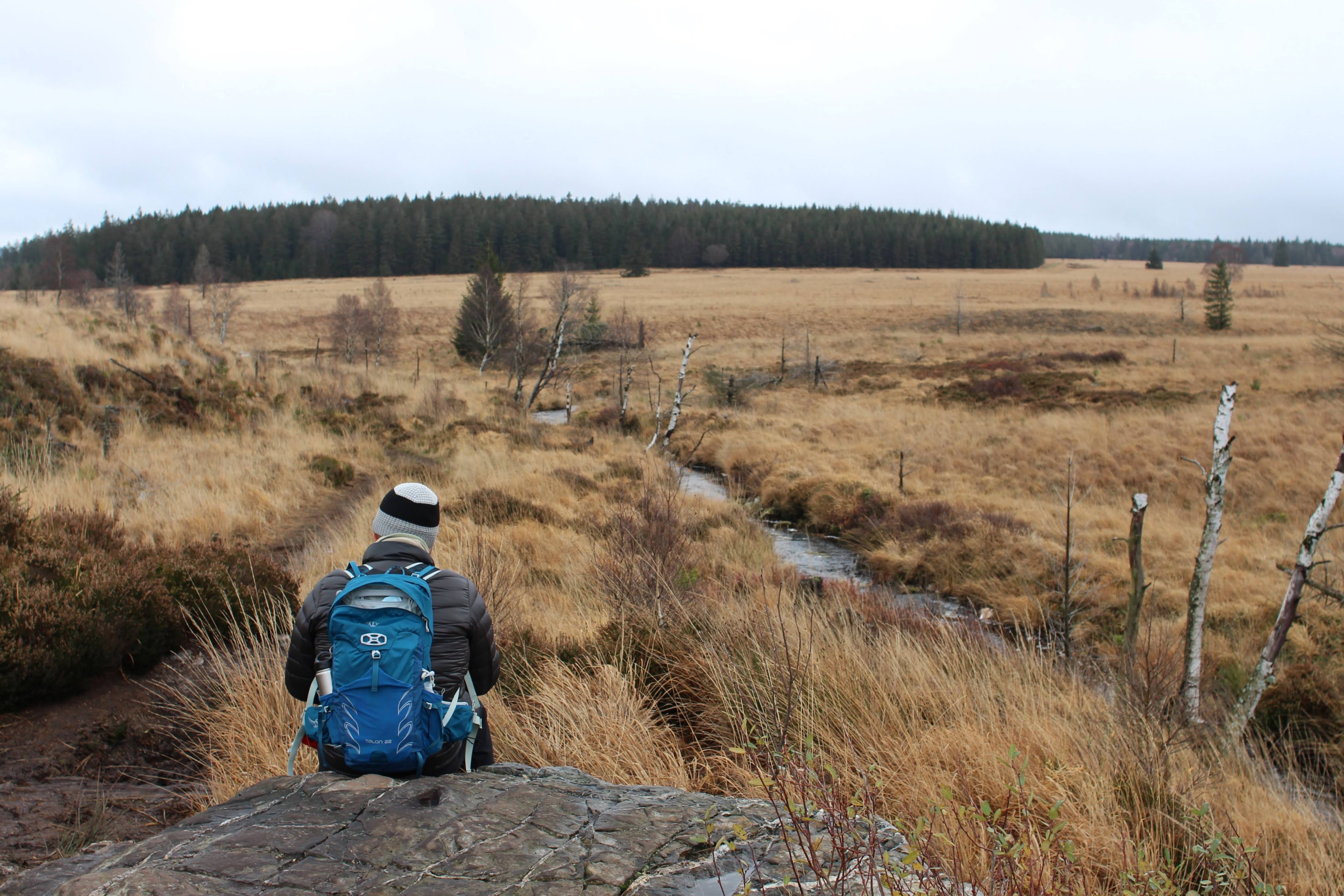 Aside from all these cool facts, it just looks impressive because of its sheer size: it took us about four hours to hike the 13 km around of the bogs. A large part of the trail over the bog is over boardwalks, both to make it easier and to preserve the bog itself, but the bit to Noir Flohay is a smaller trail and requires high, watertight shoes and some balancing in the mud. We see a few other walkers and a few cyclists, but most of the time we’re alone. No benches though, so for lunch we perch on a rock by the river (the chicken sandwich is great).