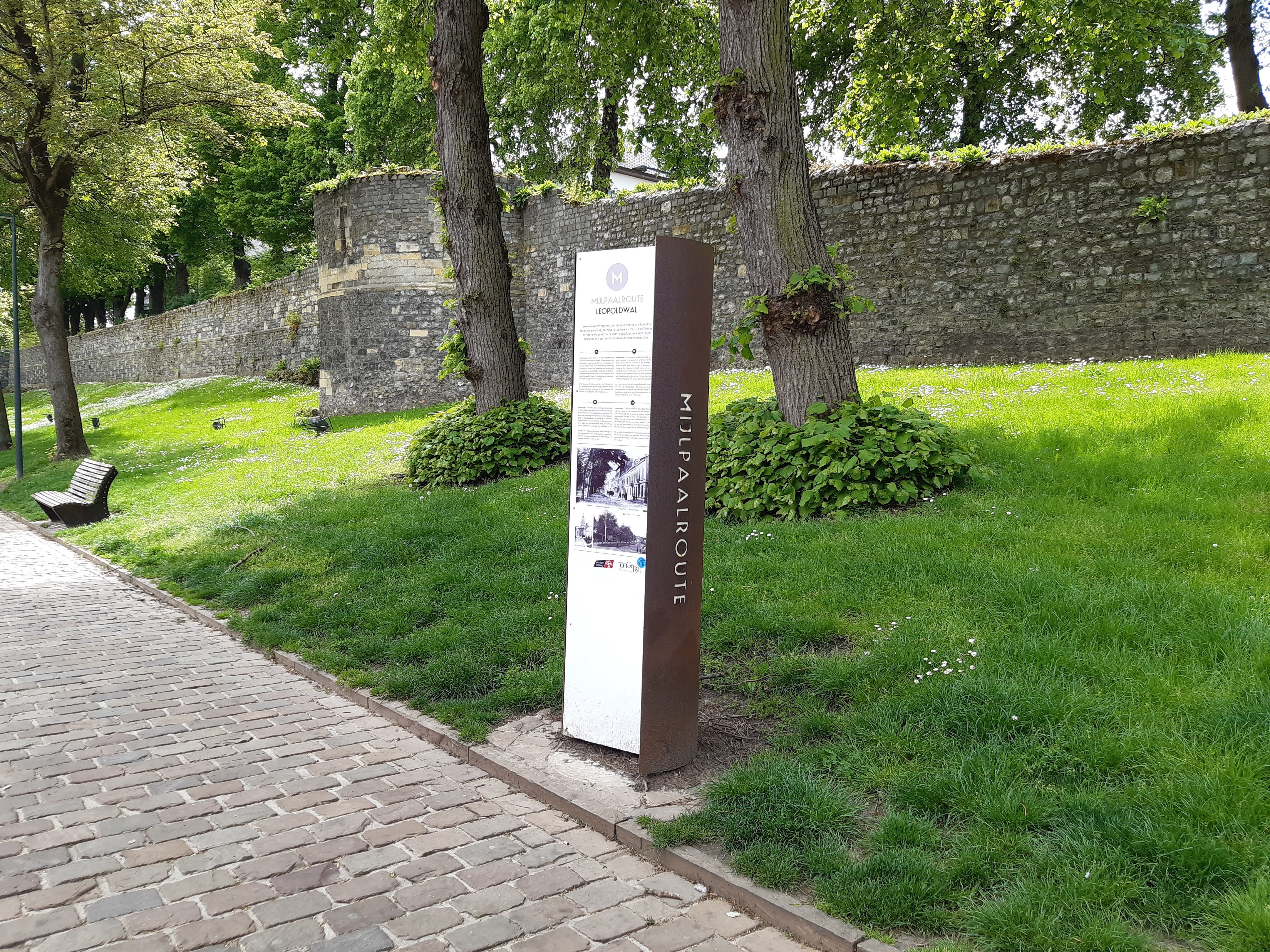 We’re out by 1 pm, thoroughly tired of wearing the mouth mask all the time, and we find a terrace on the market place, right by the statue of the Eburon leader Ambiorix. We have a warm snack and a coke while deciding what to do with the rest of the day. It should remain dry for a few hours yet so we pick a signposted city walk, it should bring us past the famous beguinage. We stop at the car for better rain gear and set off – in the reverse direction – to follow the colored cobble stones. Navigating the route in reverse is not so easy, as the metal cobble stones are not always easy to spot, so it becomes a challenge to find the next one. Fortunately, I also have the route on Wikiloc and can always double check.
