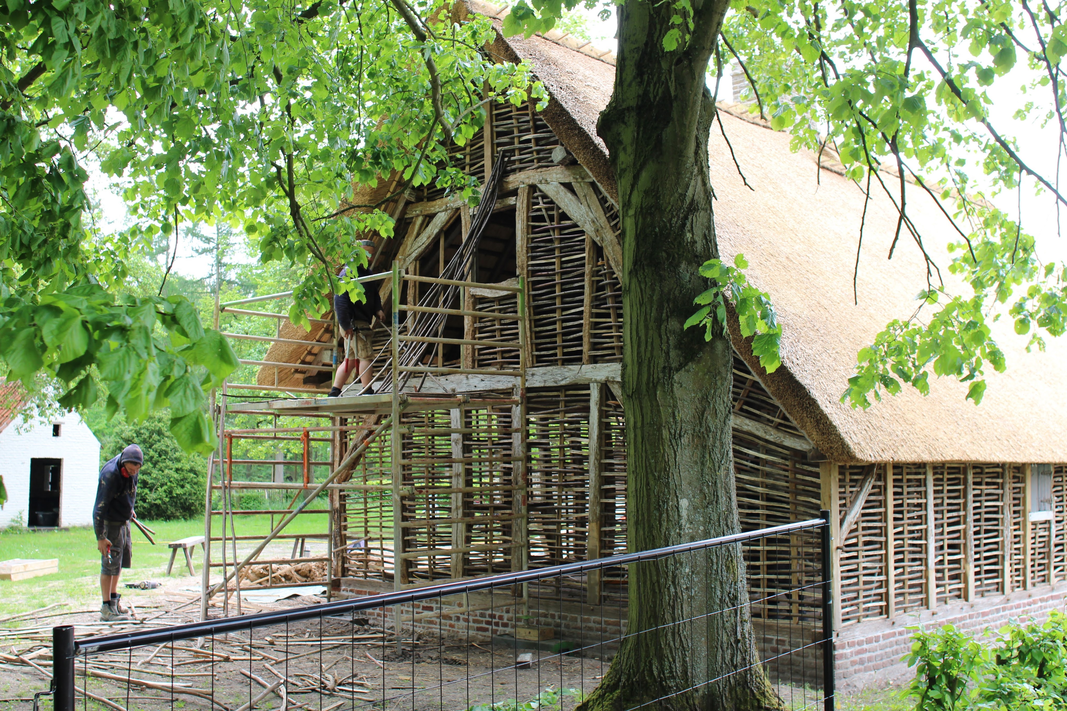 It takes us five hours to do the 4.5 km walk, because we stop at each and every one of the structures to read the information panels, visit the interior and listen to the guides. Each info panel has both the timeline of the structure itself – when was it built, who lived there, how was it acquired and moved from its original location, with pictures – and some general information about crafts, building techniques or locations. I love it. I peer at the straw roofs (one of the buildings required 60 tons of straw), observe the crew creating wattle and daub walls and try to figure out how the roof beams are held together by wooden pegs.