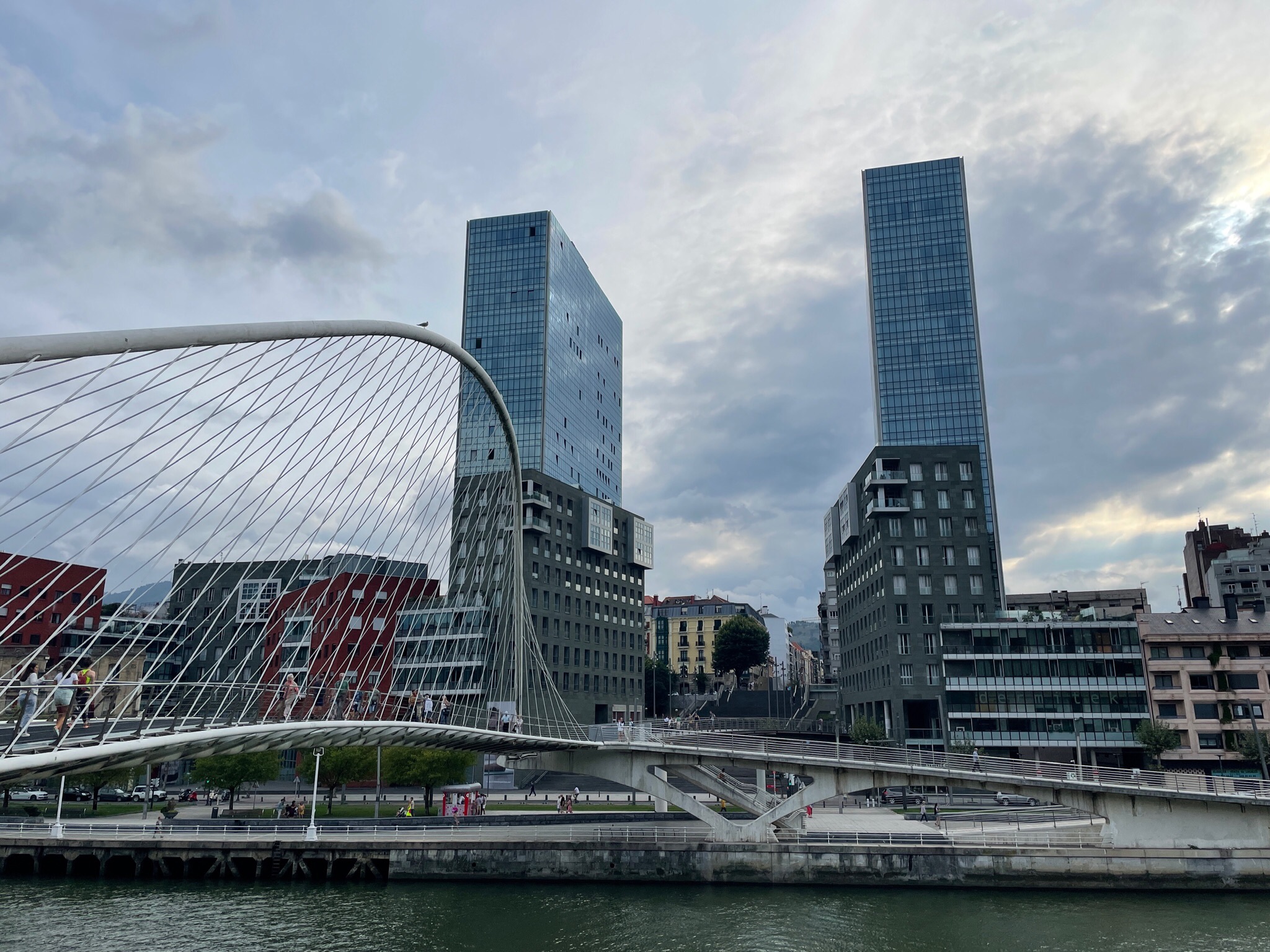 Subway line 1 back to Bilbao, we decide to get out at Deustu, to make our way back on foot on the right bank, where we have great views of Euskalduna Jauregia (a congress and concert center), Iberdrola Dorrea (a skyscraper), the Guggenheim museum with its outdoor art pieces, the Zubizuri footbridge and Isozaki Atea (a pair of sky scrapers). On the way we admire many of the smaller, older town houses, it really is a charming city. After a quick stop for some fruit and yoghurt we return to our appartment for a long shower (the only kind when you need to wash of sunscreen), a light dinner and some writing.