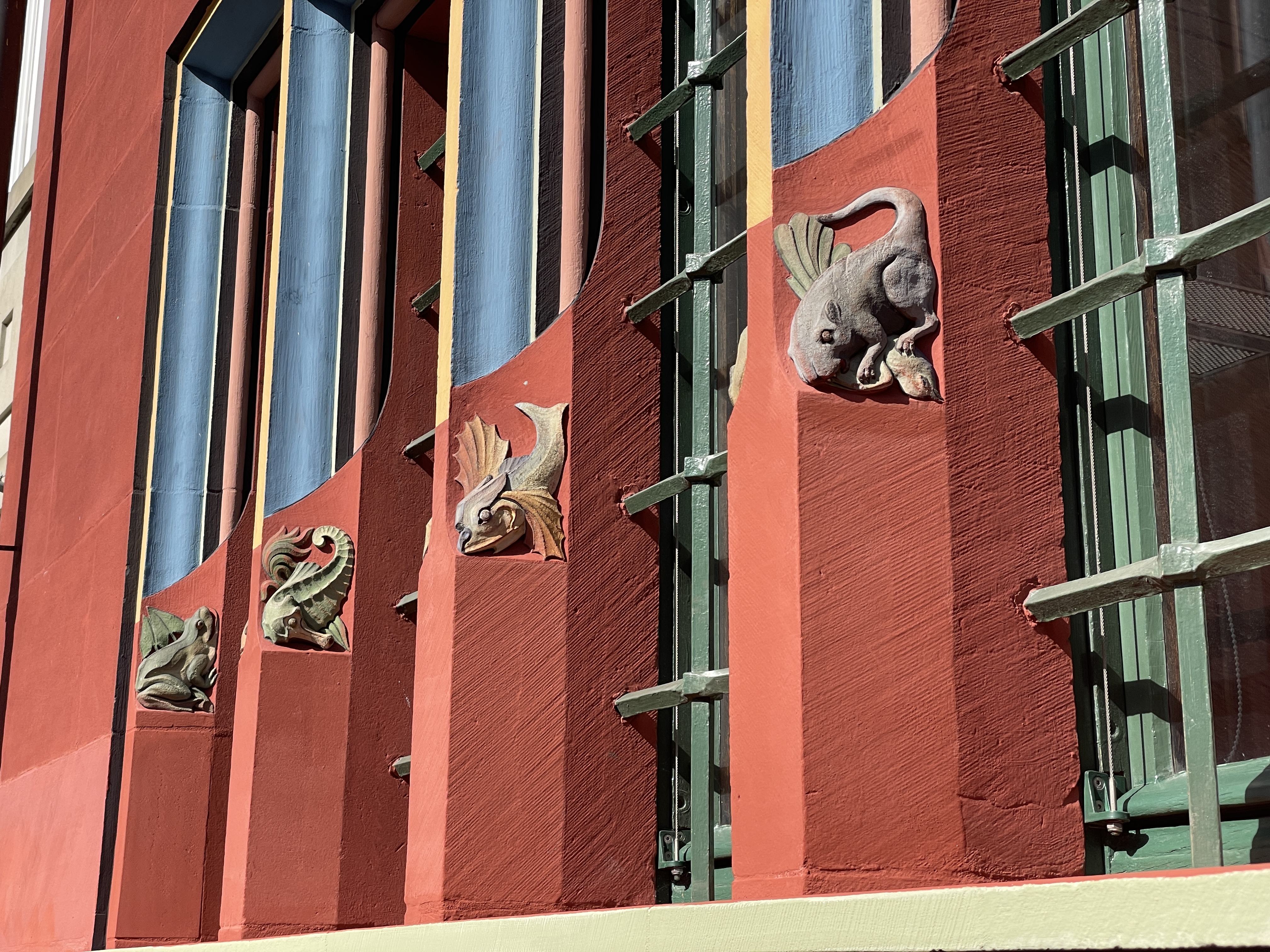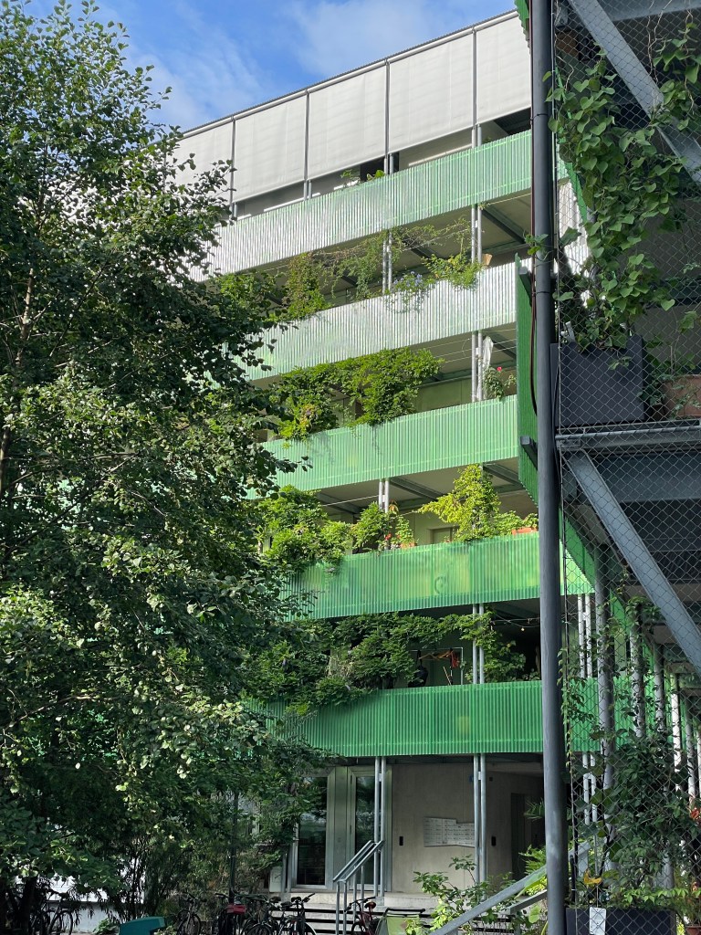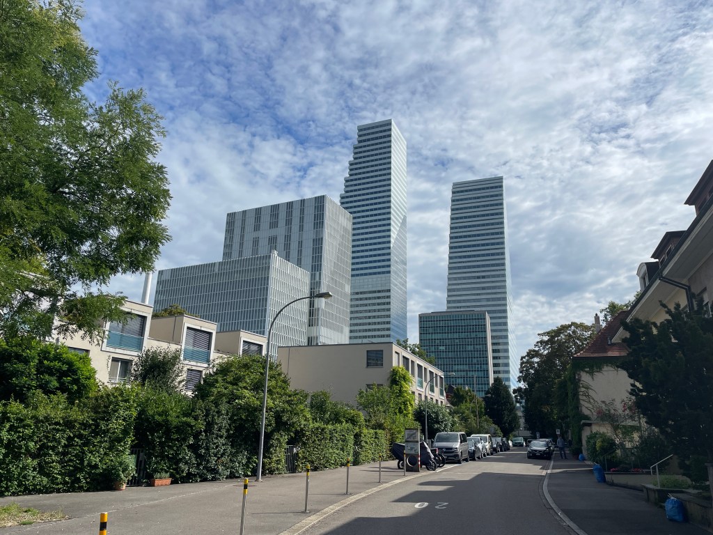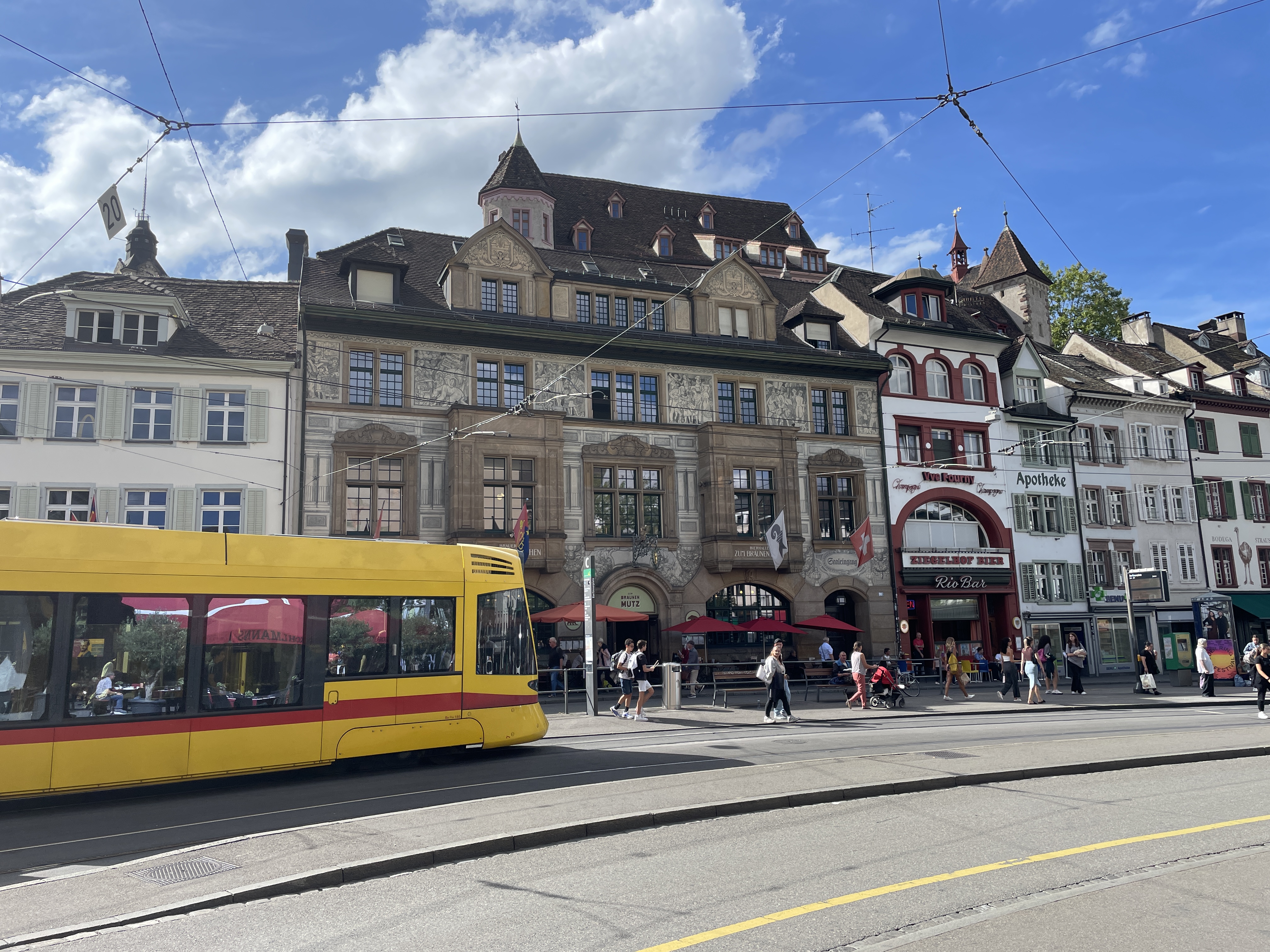 Around nine, we get off the tram at the Dreirosenbrücke (bridge of three roses, it’s not immediately apparent where the roses are) and make our way to the start of the tour of Klein Basel. This area was extensively rebuilt and renovated after the industry left town, so it’s a charming mix of older, Swiss looking buildings and large modern architecture projects, all of it interspersed with lots of green and pedestrian areas. It takes us 14.000 steps and two and a half hours to finish the tour, tired but satisfied with the discoveries. We didn’t know most of the architects, going from their names they are mostly Swiss. Herzog & De Meuron is the most famous name we encounter, their headquarters are here in Basel and we’ll see more of their projects tomorrow.