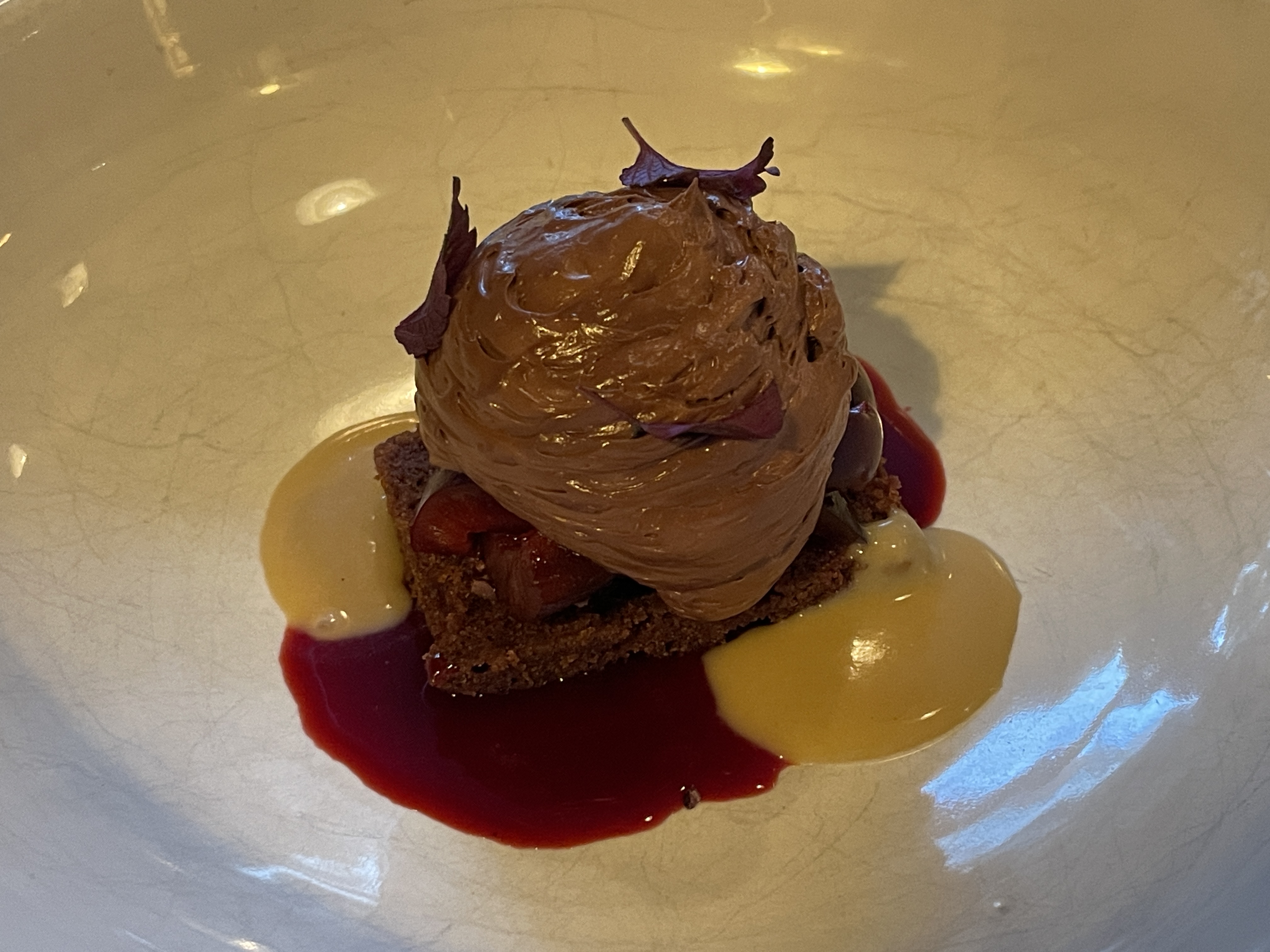 Frea is a vegan restaurant with a Michelin green star, which is an award for sustainability. We order a five course menu – mom chooses accompanying non-alcoholic beverages – and prepare to be blown away. Vegan means no animal products whatsoever, so this excludes meat and fish but also eggs, butter, milk, honey, etc. It’s a completely different way of cooking because much of the chemical reactions in f.e. French cuisine rely on butter and eggs to make emulsions. So you need different techniques entirely.